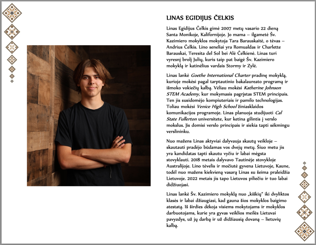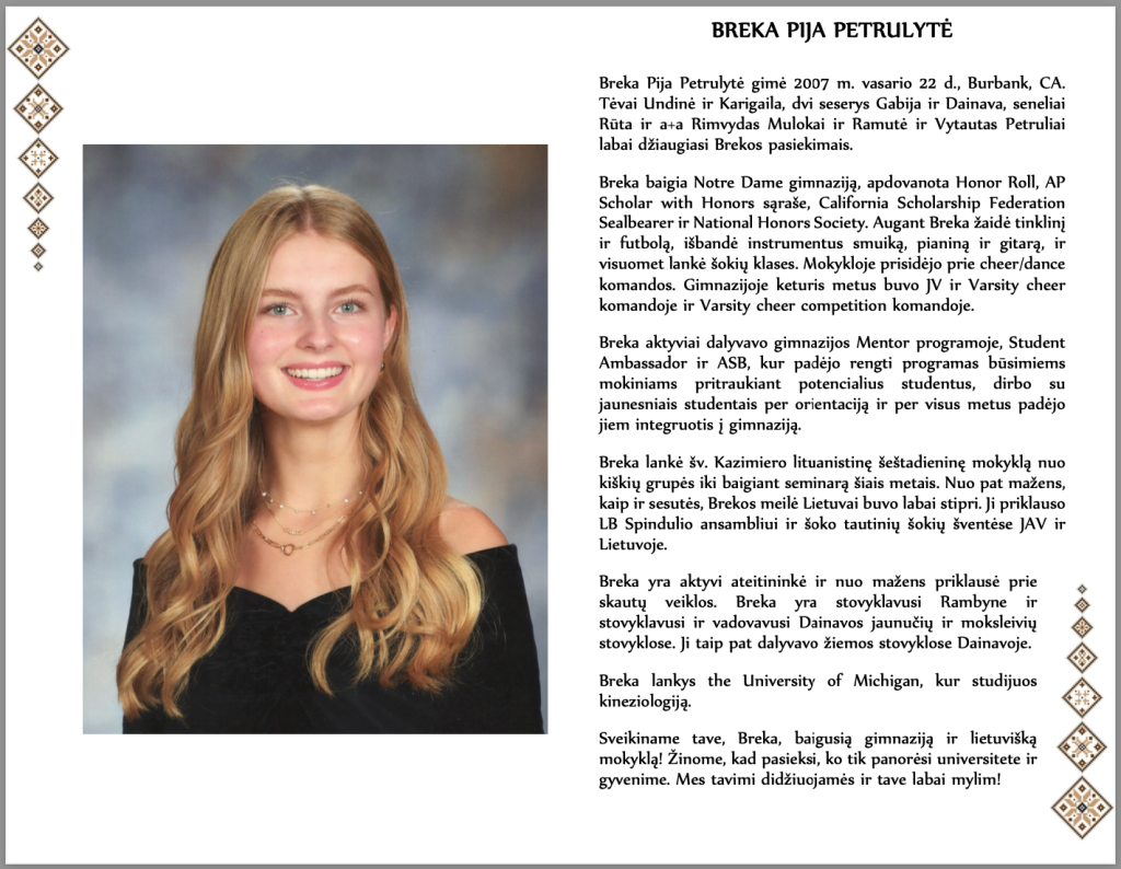 Gegužės 17d. paskutinis skambutis suskambėjo penkiems Los Angeles Šv. Kazimiero lituanistinės mokyklos mokiniams. Pagal gražią ilgalaikę šios mokyklos tradiciją mokiniai pasipuošė tautiniais lietuviškai rūbais. Kiekvieną abiturientą puošė iš Lietuvos užsakytos juostos. Gražiai apdovanoti ir su daugybe nuoširdžių palinkėjimų jie tvirtai žengė pasitikti savo pasirinkto tolimesnio kelio…