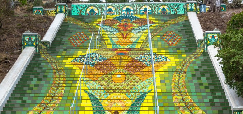 Kadaise paprastas betoninių laiptų rinkinys, šiandien 16-osios aveniu laiptus puošia nepaprastai meniški plytelių mozaikos kūriniai.