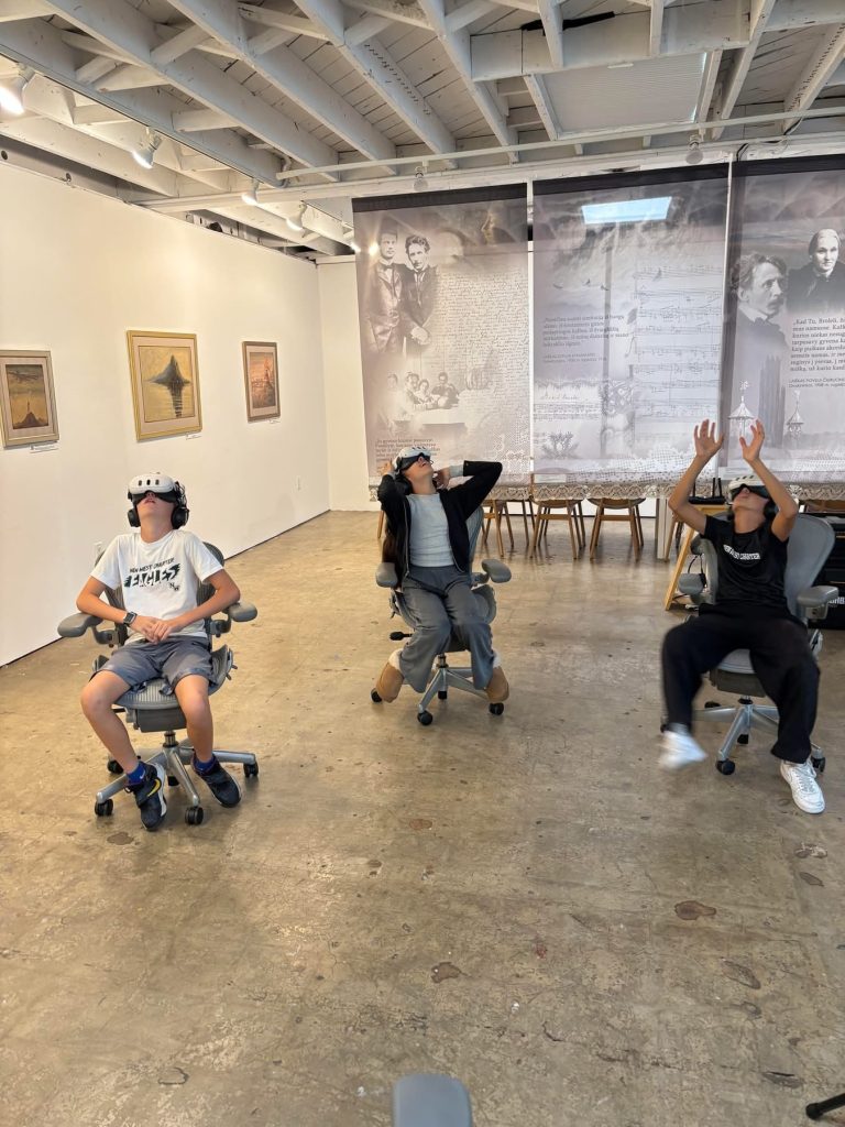 Throughout the week, visitors were welcomed by a special exhibition poster featuring artwork by Aistė Rukšėnaitė, winner of the 2025 Lithuanian-American Community Education Council art competition, inspired by Čiurlionis’ creative legacy.
