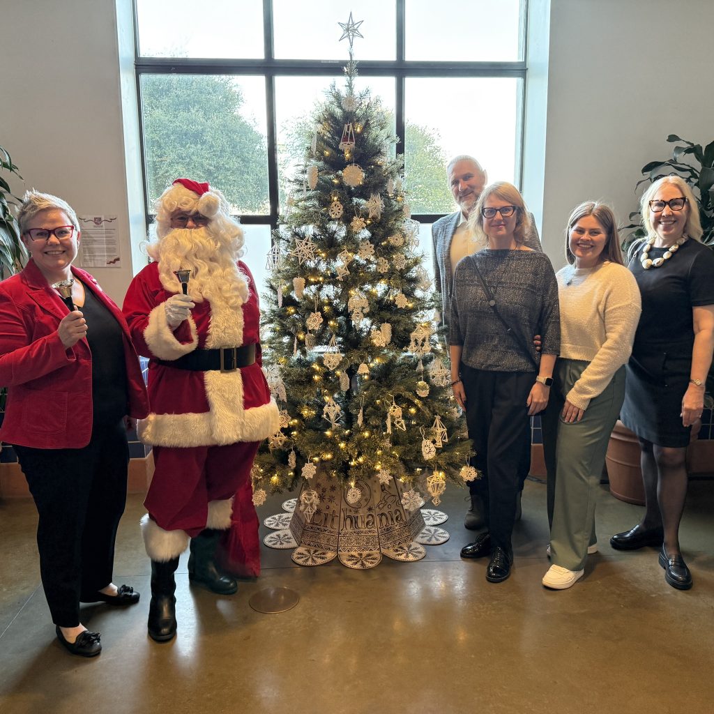 Šventės dalyvius vaišinome tradiciniais lietuviškais desertais – šakočiu ir grybukais – ir su džiaugsmu pasakojome apie Lietuvą, turizmo galimybes bei mūsų kalėdines tradicijas.