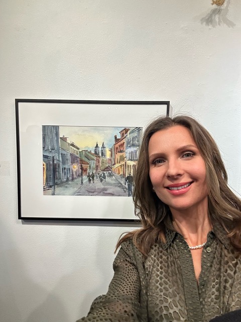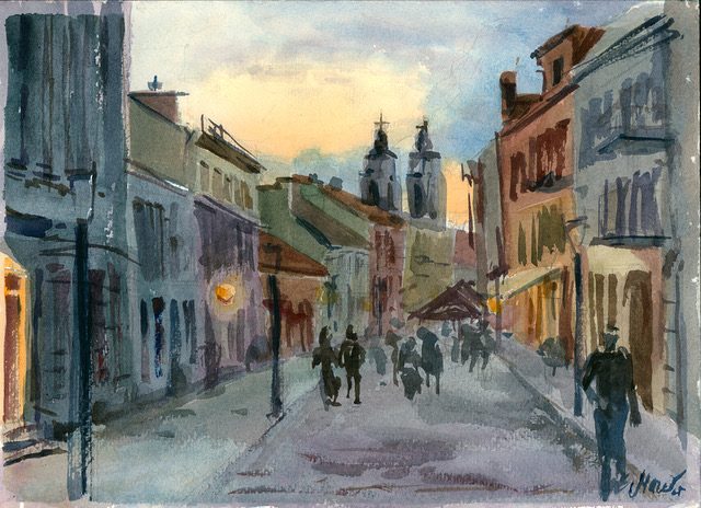 Paveikslas „Kauno senamiestis“ nutapytas 2025 metų vasarą Kaune, Vilniaus gatvėje. Pasak autorės, kūrinys gimė stebint pereinamąjį paros laiką – momentą tarp dienos ir nakties, kai palaipsniui keičiasi miesto apšvietimas. Šiame paros laike užsidegę gatvės žibintai pakeičia senamiesčio pastatų spalvinį suvokimą, o žmonės tampa antraeiliais motyvais, vaizduojamais tik kaip siluetai.