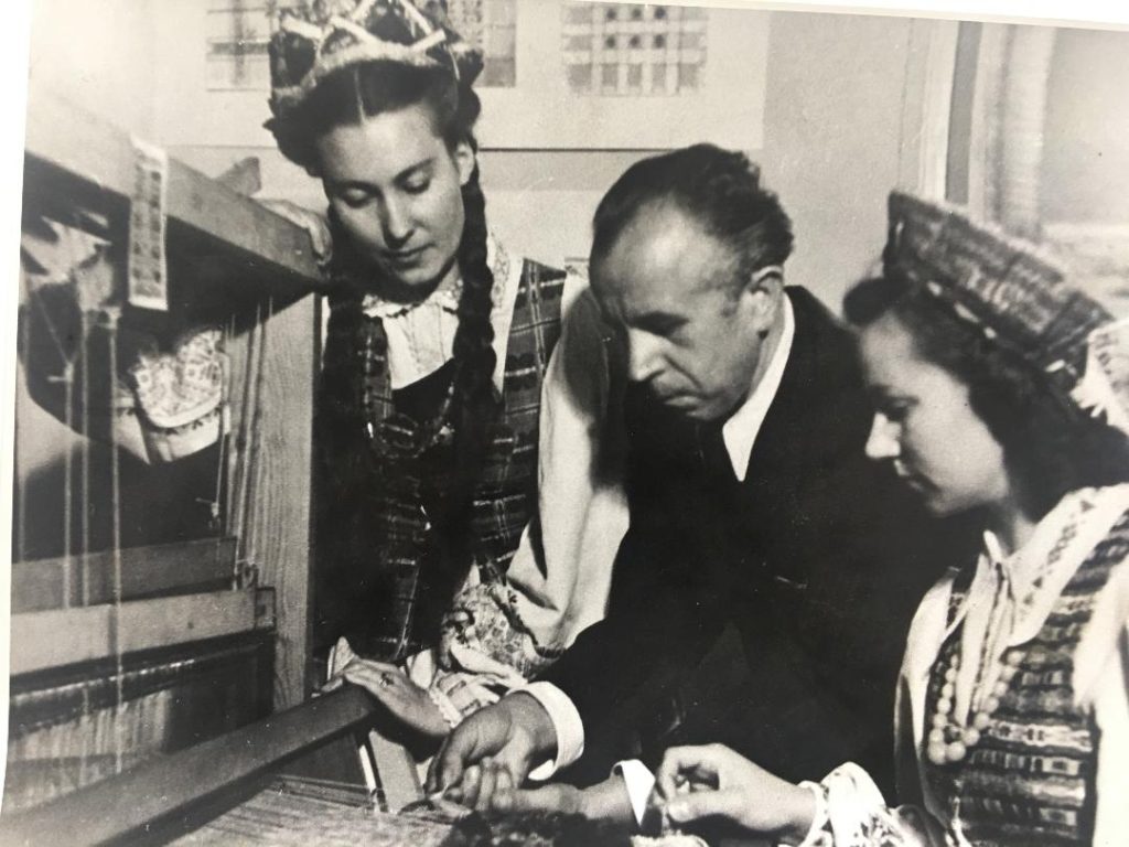 Bronė Jameikienė (k.), Antanas Tamošaitis ir Aleksandra Daugvilienė Freiburgo Meno ir amatų mokykloje Vokietijoje. (Lituanistikos tyrimo centro nuotr.)