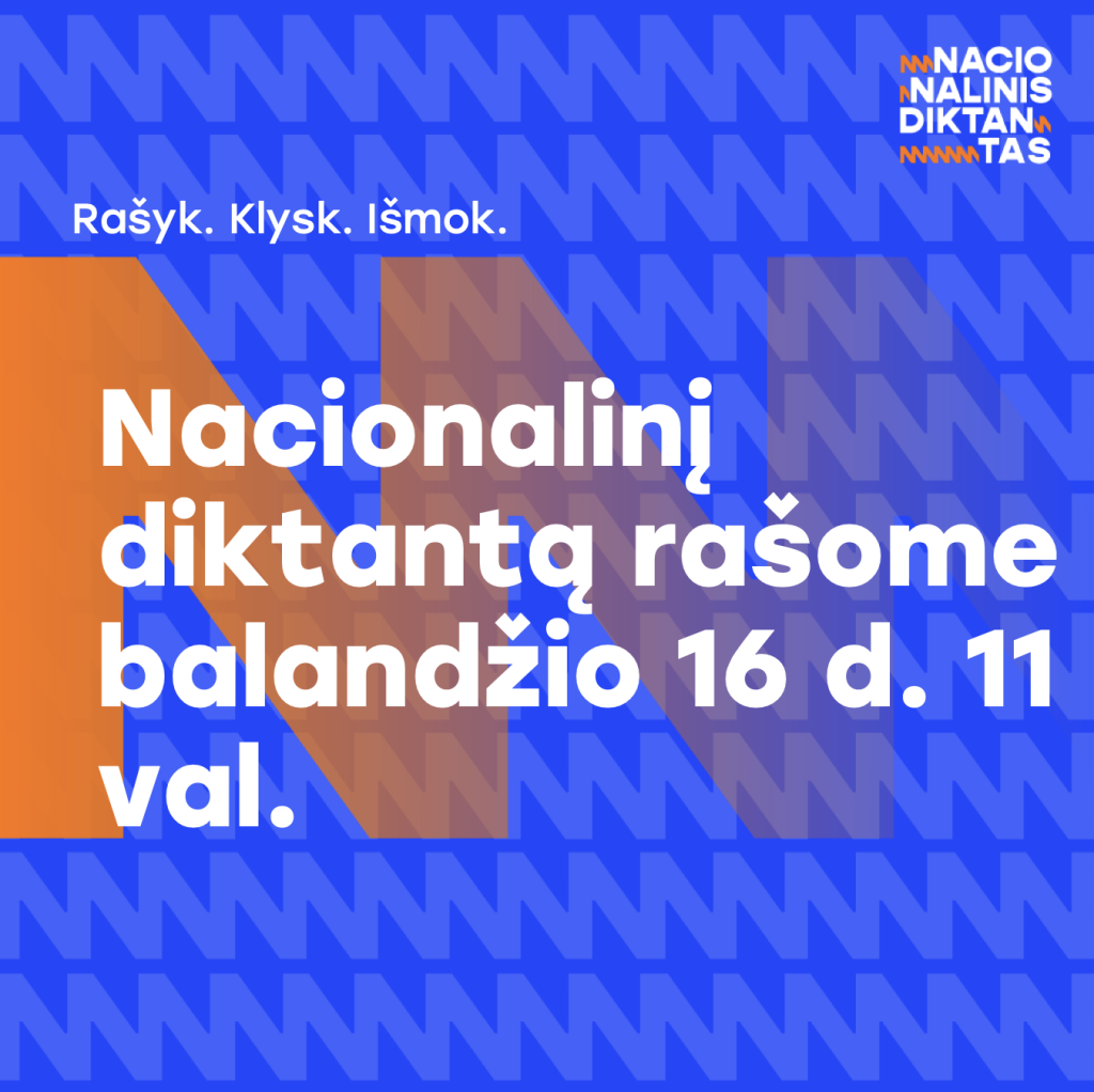 Nuoširdžiai kviečiame prisijungti prie Nacionalinio diktanto šventės! Mūsų šūkis: RAŠYK. KLYSK. IŠMOK.